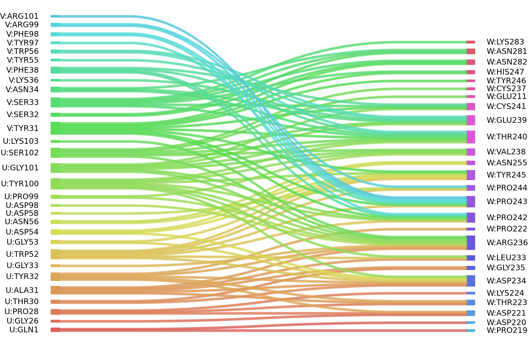 : residuesposition U: GLN1 PRO28 THR30 ALA31 TYR32 TRP52 ASP54 ASN56 PRO99 TYR100 GLY101 SER102 V: TYR31 SER32 SER33 ASN34 LYS36 PHE38 TRP56 PHE98 ARG99 ARG101 W: GLU211 ASP220 ASP221 PRO222 THR223 LYS224 LEU233 ASP234 GLY235 ARG236 CYS237 VAL238 GLU239 THR240 CYS241 PRO242 PRO243 PRO244 TYR245 HIS247 ASN255 ASN281 ASN282 LYS283 |