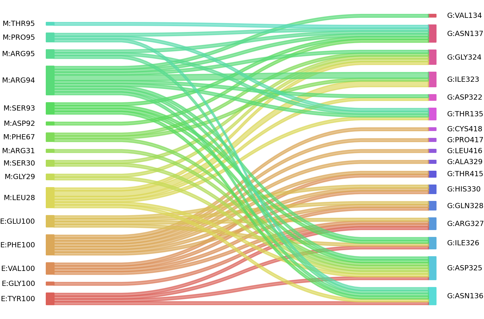 : residuesposition M: LEU28 GLY29 SER30 PHE67 SER93 ARG94 G: VAL134 THR135 ASN136 ASN137 ASP322 ILE323 GLY324 ASP325 ILE326 ARG327 GLN328 HIS330 THR415 PRO417 |