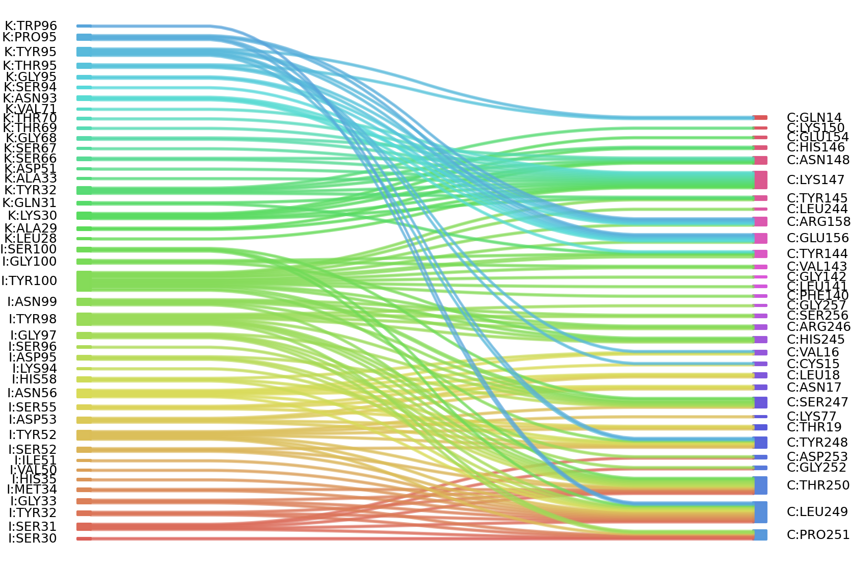 2、We defined interacting paratope-epitope residues by a distance cutoff of < 6 Å . Two amino acids are considered as interacting residues if they have at least one atom within a distance of 6 Å from any atom.
